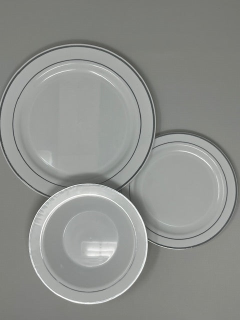 Party joy Premium Heavyweight plastic disposable | White with silver lace | Heavy duty wedding plates